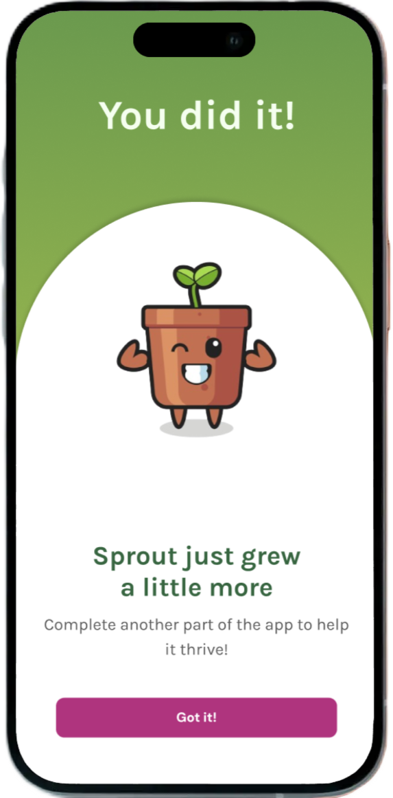 A friendly digital companion named Sprout, offering encouragement and clarity